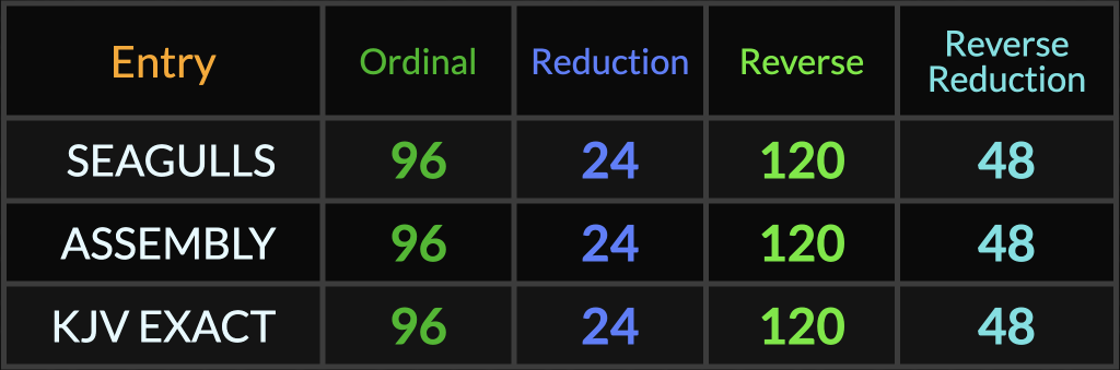 Notice that “Seagulls” is an exact match to “Assembly” and “KJV Exact”.